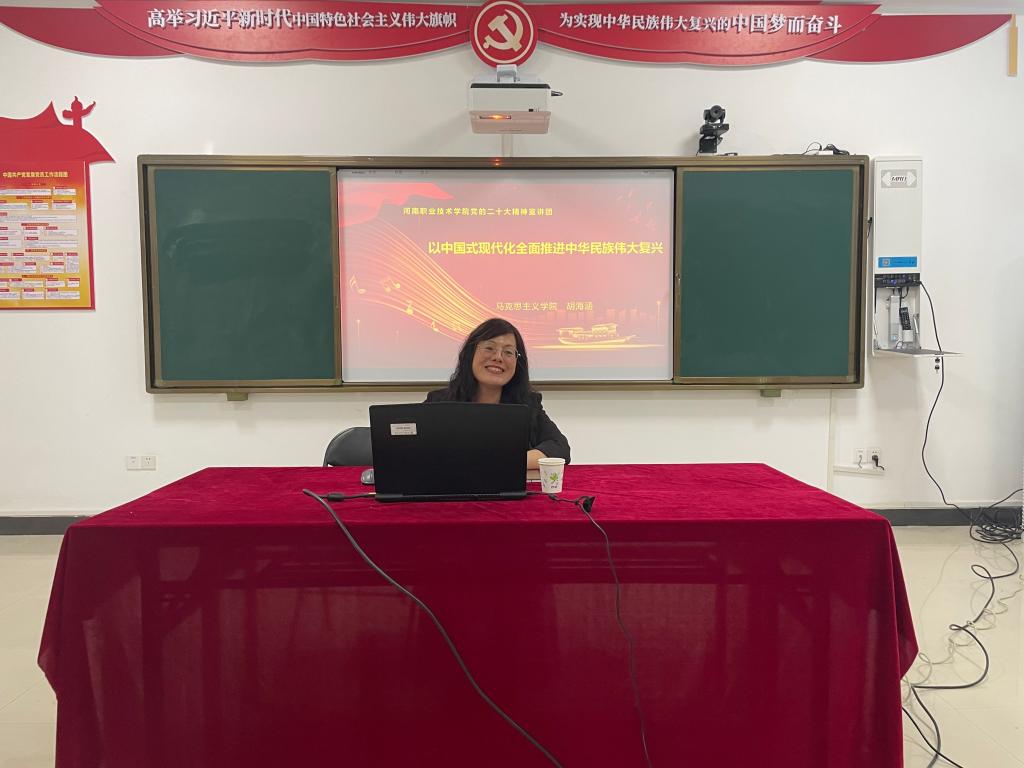 为深入学习宣传贯彻党的二十大精神,更好的团结引领全体教师党员紧跟主题教育学习要求,切实做到学实学透,数字创意与设计学院党总支精心组织安排,于6月8日下午邀请马克思主义学院二十大精神主题教育宣讲团重要成员胡海涵副院长为学院全体教师党员作了一场全面深刻、精彩生动的专题宣讲报告。徐海燕书记出席主持会议。