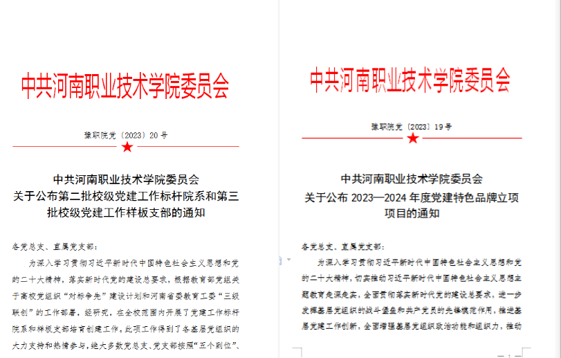 近日,中共河南职业技术学院委员会公布了2023—2024年度党建特色品牌立项项目、第二批校级党建工作标杆院系和第三批校级党建工作样板支部建设通知,我院教师一支部成功入选党建特色品牌立项项目,学生党支部荣获党建样板党支部建设单位,这是我院基层党建工作取得的又一重要成果,是我院基层党建工作水平显著提升的具体表现。(供稿:朱函兵 审稿:徐海燕)