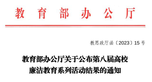 近日,教育部发布了《教育部办公厅关于公布第八届高校廉洁教育系列活动结果的通知》。