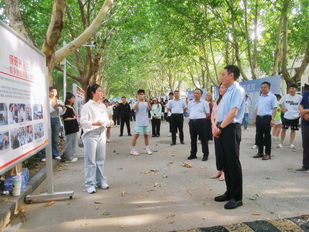 现场讲解员针对就业培训指导、访企拓岗、专场双选会、优秀校友分享等活动进行了详细说明。厉书记亲切的询问学生参加职业生涯规划大赛的感受和学习到的知识,并提出建议,希望学生多参与相关活动,提升专业技能,拓展就业能力。