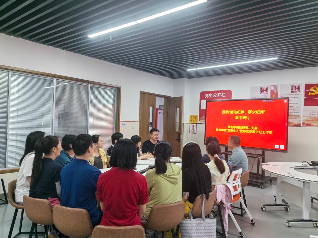 为贯彻河南职业技术学院党委和数字创意与设计学院党总支关于党纪学习教育安排部署的会议精神,2024年6月17日下午,数创学院教师第二支部在双带头人教师党支部书记工作室开展了党纪集体学习活动,