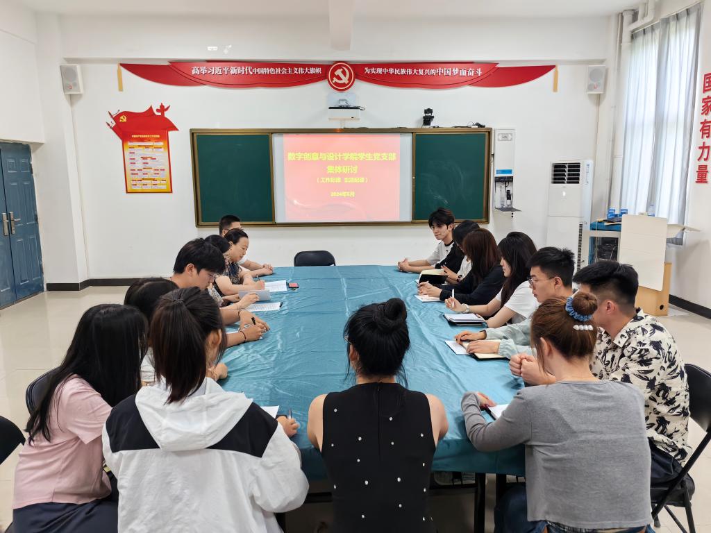 6月25日下午,数字创意与设计学院学生党支部在敏行楼302组织集中学习,学习研讨党的工作纪律、生活纪律。支部党员教师和学生预备党员代表参加会议。