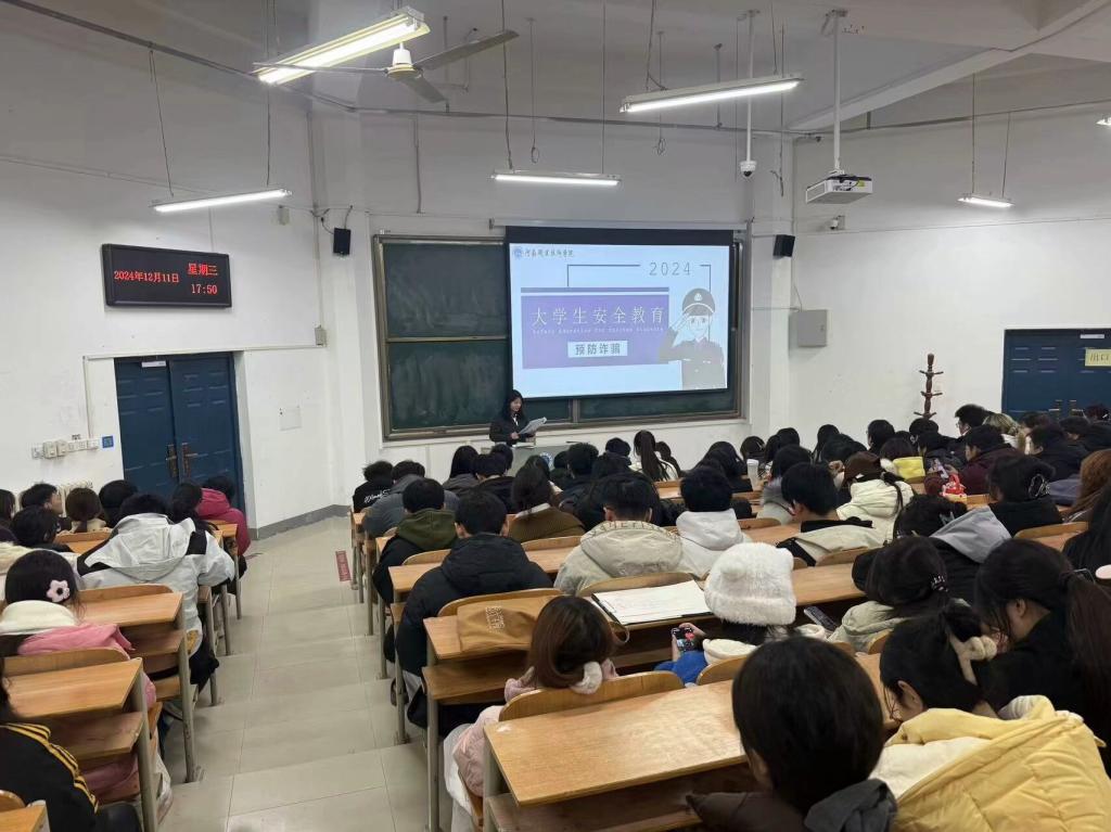 接下来,学院还组织了冬季安全教育主题班会。班会内容丰富,涵盖冬季宿舍用电安全,消防安全,火灾逃生,交通安全及网络反诈骗安全等多项内容。安全教育主题班会增强了同学们的安全意识,为学生平安过冬筑牢根基。