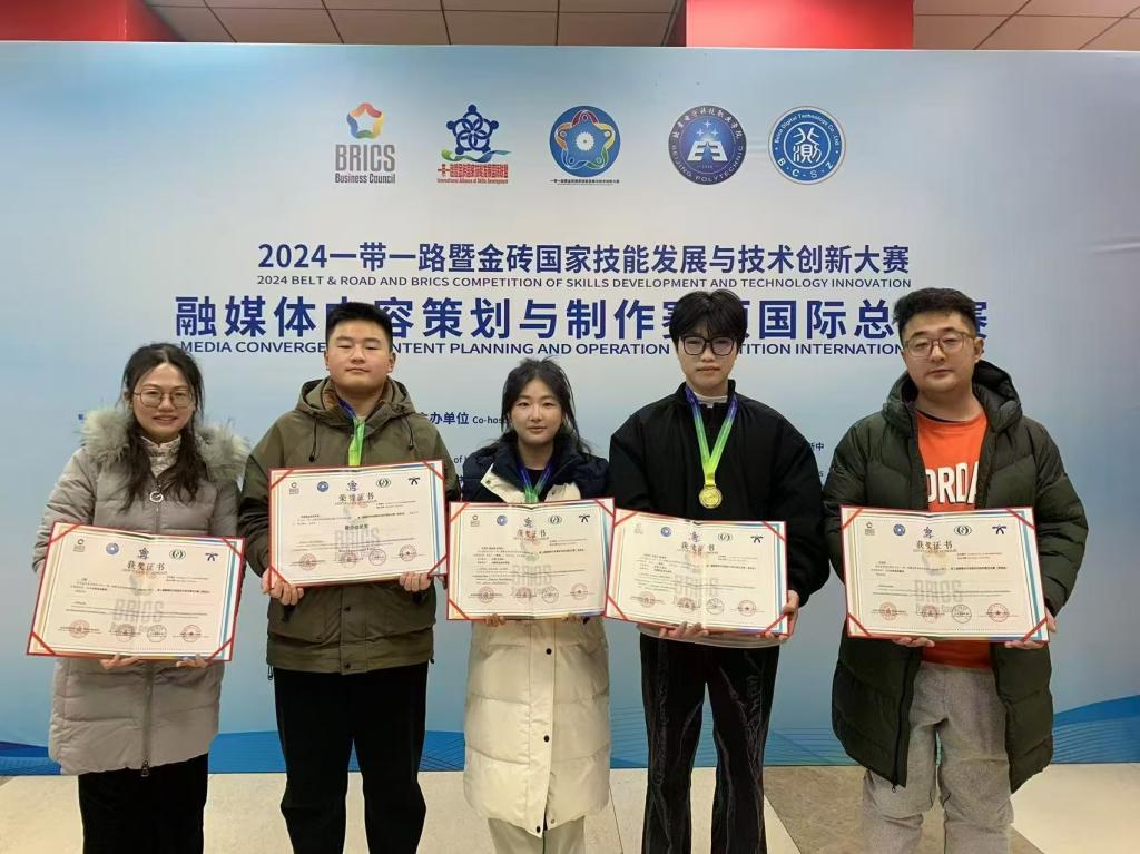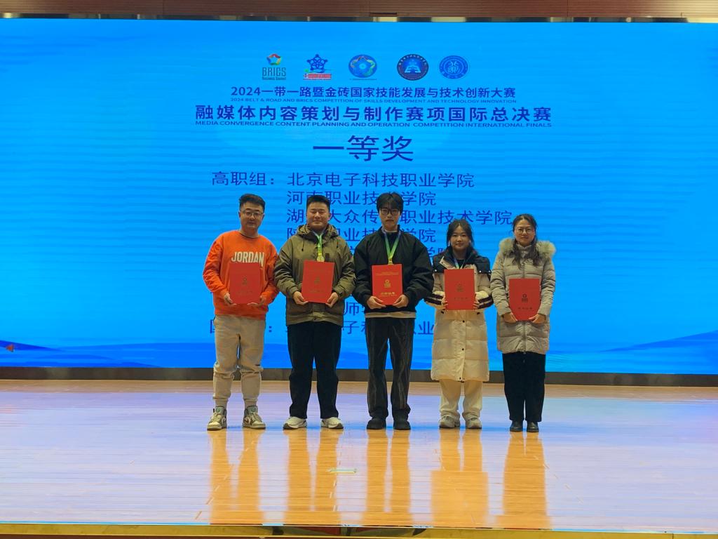12月19日至21日,2024“一带一路”暨金砖国家技能发展与技术创新大赛第二届融媒体内容策划与制作国际总决赛在北京电子科技职业学院举行。经过激烈角逐,数字创意与设计学院教师王珺和王兆阳指导的学生刘佳怡,齐茄羽,杨金掏以优异的成绩,获得大赛高职组一等奖;王珺和王兆阳获得优秀指导教师;学校获最佳组织奖。