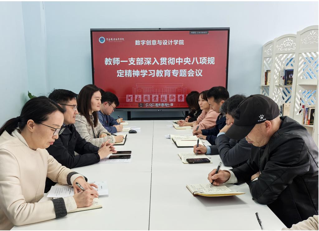 为深入贯彻中央八项规定精神学习教育,推动作风建设走深走实,数字创意与设计学院教师第一党支部于4月1日下午召开专题会议,集中学习中央八项规定精神。教师第一党支部党员参加学习,校党委委员、副校长任枫轩以普通党员身份参加会议。