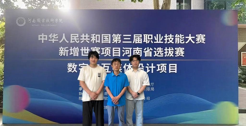 6月19日至20日,中华人民共和国第三届职业技能大赛新增世赛项目河南省选拔赛“数字交互媒体设计”(世赛选拔)赛项在河南职业技术学院成功举行。经过激烈角逐,我院数字媒体技术专业23级学生湛魏莱、王征征凭借扎实的专业功底和出色的现场发挥,在此次大赛中分别荣获第一名和第二名好成绩。