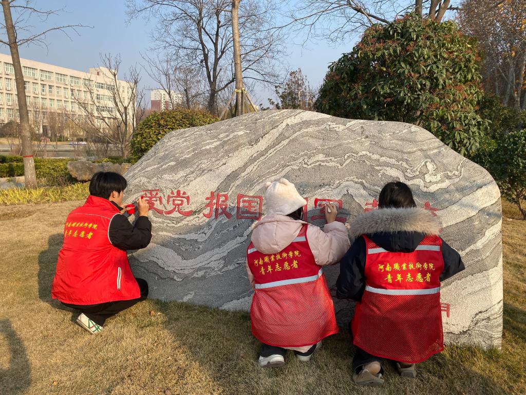 “蹲在石头前描色的时候,指尖触到粗糙的石面,突然觉得校训不再是课本上的文字,而是有了实实在在的温度!”参与活动的常凯说,平时在课堂上学习建模与视觉设计,这次亲手为校园题字“焕新”,让他深刻体会到“设计源于生活,服务于生活”的意义。