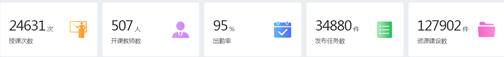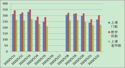 我校网上教学已进行13周,整体教学状况良好。截止5月22日,共有507名网上开课教师,授课24631次,发布34880个教学任务,共建设127902个教学资源,提交作业数1883648份,平均出勤率95%。