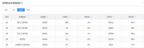 资源数最高的教学单位为22904个,平均资源数为10700个,较前几周有一定提升;使用率最高为96%,平均使用率为74%,平均使用率较前两周略有下降。