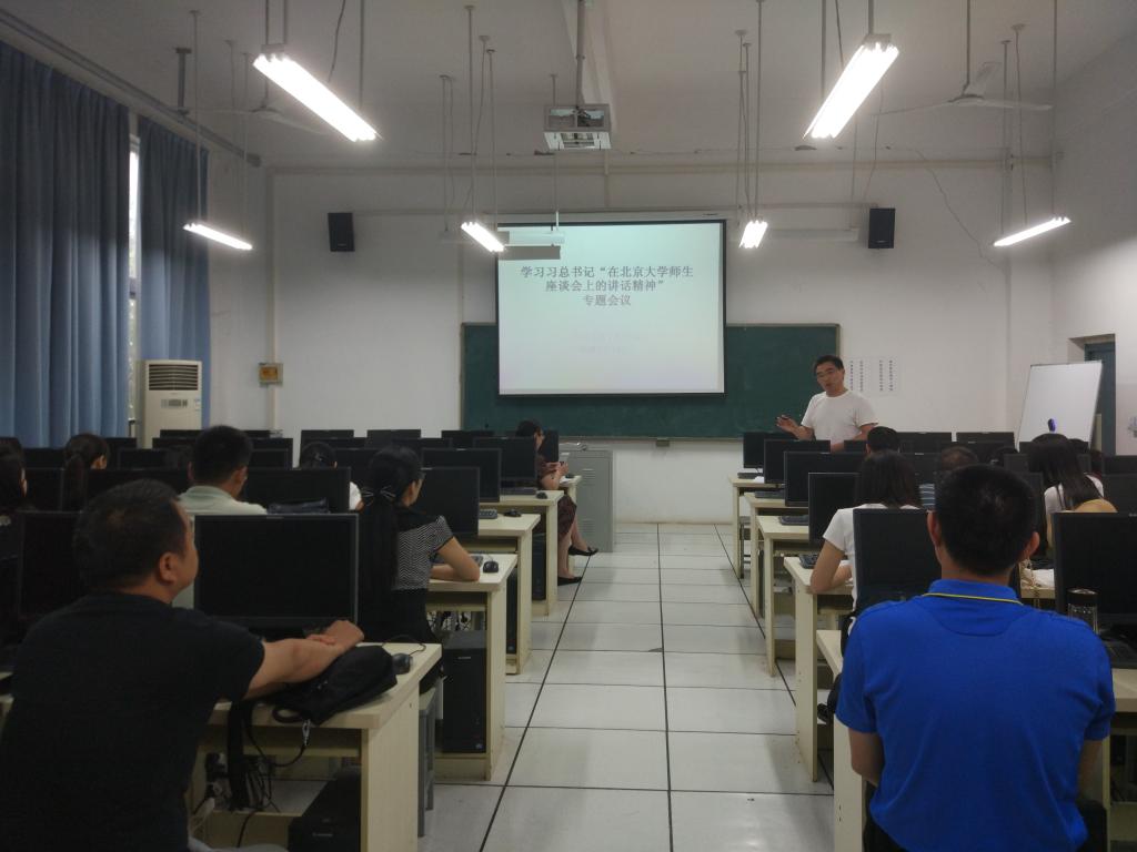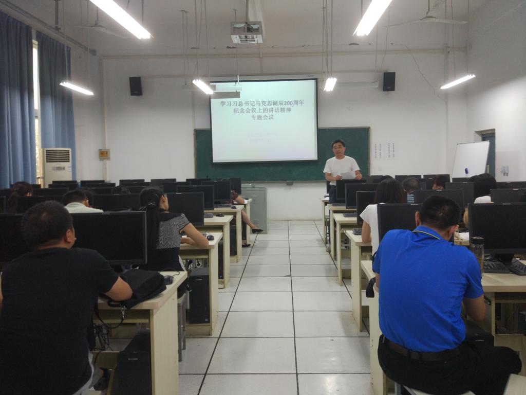 5月31日下午,环境艺术工程学院在电教楼109教室召开专题会议,学习习总书记在北京大学师生座谈会和纪念马克思诞辰200周年大会上的讲话精神”,学院班子成员及全体教职工参加会议。