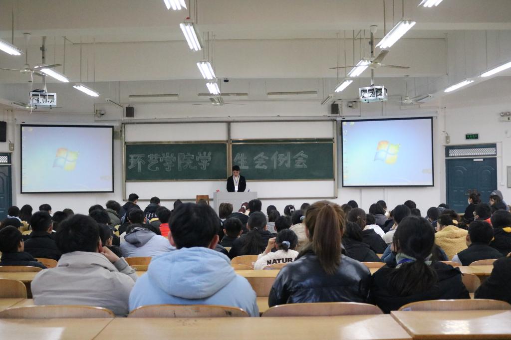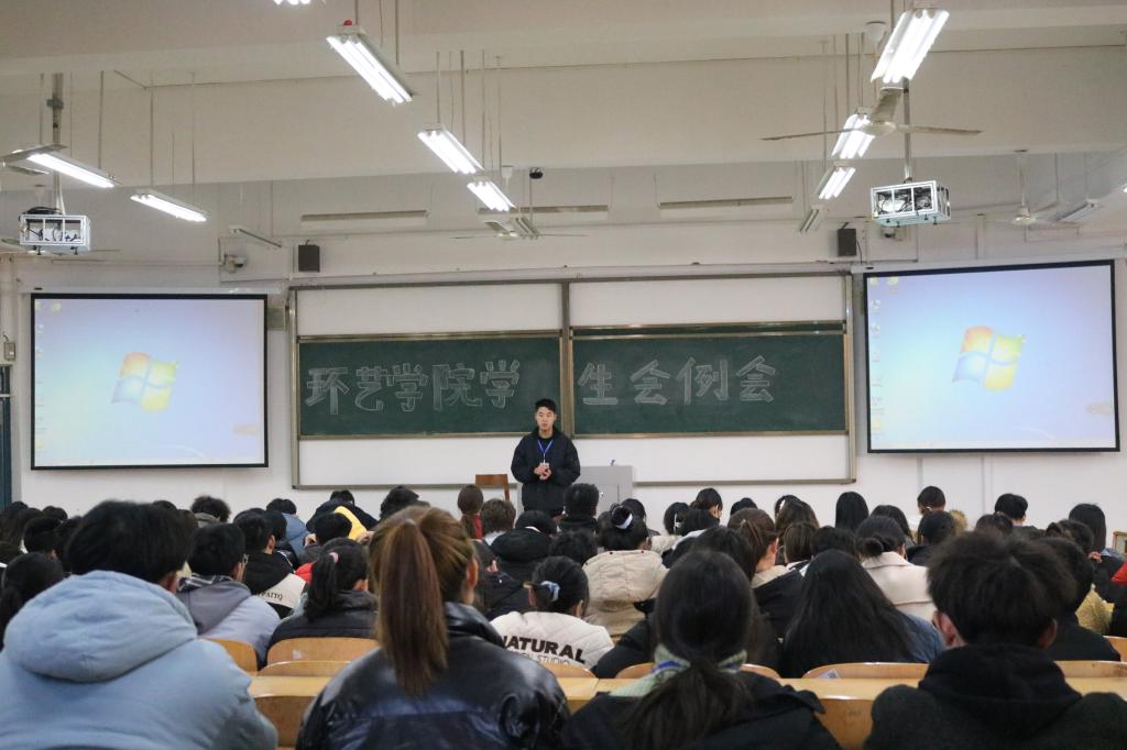 12月23日中午,环境艺术工程学院在1201教室召开学生会工作例会。大一、大二全体学生会工作人员参加本次例会,会议由执行主席王润涵同学主持。