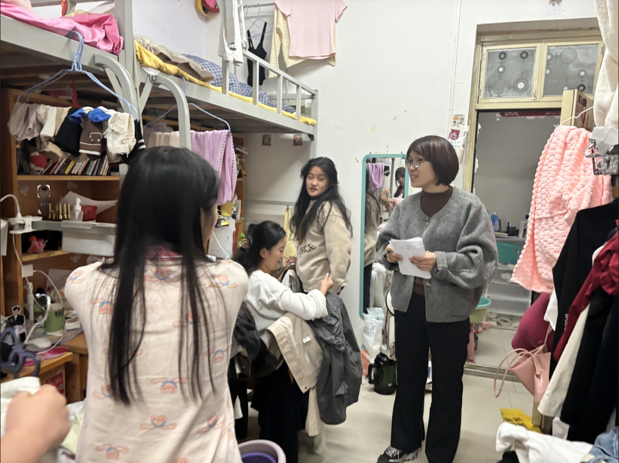 11月5日,为深入了解同学们学习与生活状况,进一步推动一站式学生社区建设,数字创意与设计学院积极响应学校号召,组织开展了“零距离”慰问走访活动。学院党总支副书记田景娜及全体辅导员老师深入学生宿舍,与学生面对面交流,送上学院的关怀与温暖。