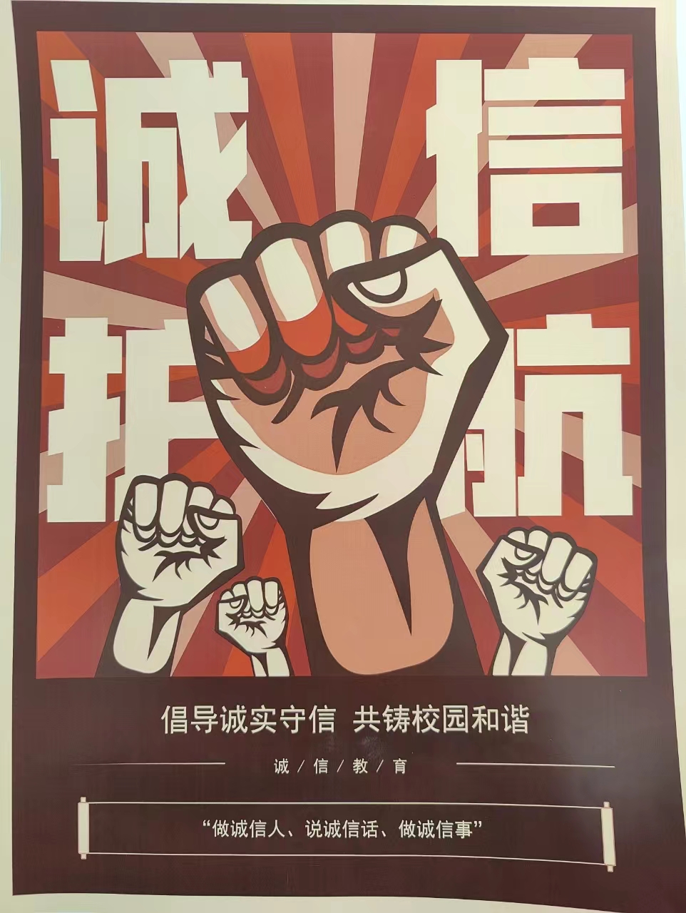 为增大资助政策宣传力度,围绕立德树人根本任务持续深化资助育人工作,增强学生诚信意识,营造诚信校园氛围,深入挖掘中华民族优秀传统文化中爱祖国、守诚信、崇正义、懂感恩的时代价值。由我院举办的“诚信教育”主题作品征集活动圆满结束。