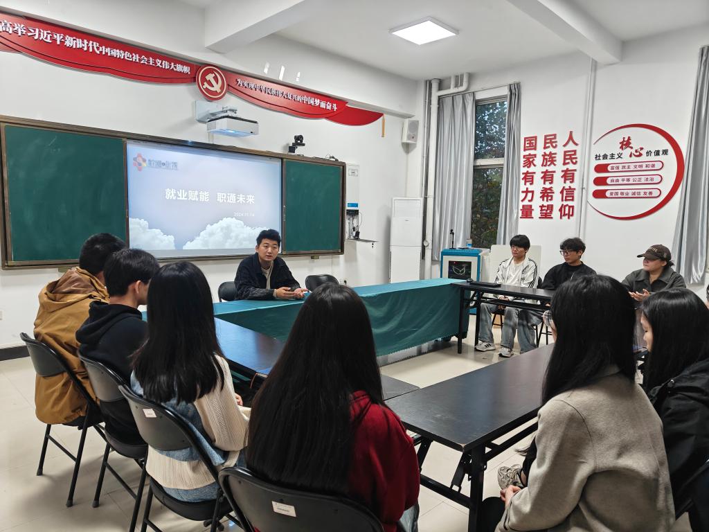为增进在校同学与优秀校友的交流,拓展同学们对未来生涯的视野,11月14日下午,数字创意与设计学院在敏行楼三楼党员活动室举办“就业赋能 职通未来”优秀校友就业沙龙活动,此次活动邀请河南优创信息科技有限公司创始人段路浩与同学们进行面对面的交流与分享,帮助学生更好地了解就业市场,提升就业竞争力。