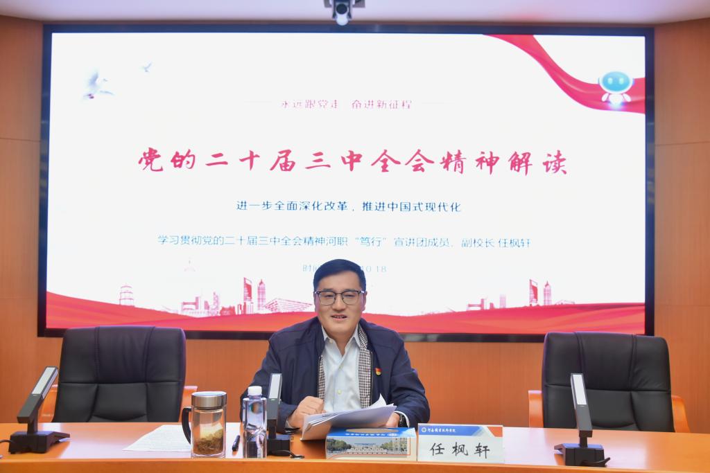 任枫轩以“进一步全面深化改革,推进中国式现代化”为主题,从“充分认识党的二十届三中全会的重大意义、围绕中国式现代化全面深化改革,全面把握会议公报重点、深刻理解全会关于教育科技人才工作的重要部署,把学习全会精神与实际工作相结合,推动党的二十届三中全会精神走深走实”三个方面,对党的二十届三中全会精神进行深入解读。