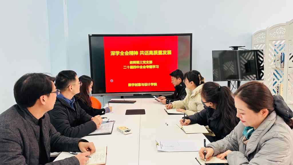 为深入学习贯彻党的二十届四中全会精神,切实把思想和行动统一到党中央决策部署上来,11月20日下午,数字创意与设计学院教师第三党支部在敏行楼 317 会议室召开专题学习会。