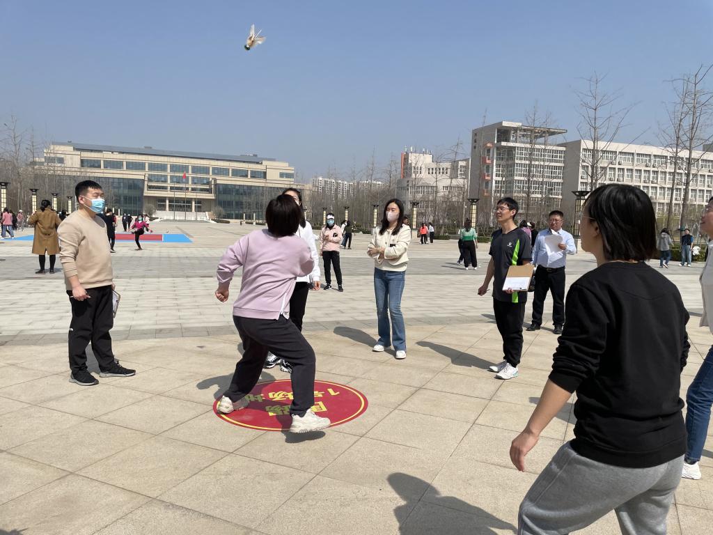 为迎接第113个国际妇女节的来临,3月6日中午,由数创学院10名女教工组成两支围踢毽子队伍,在分工会主席徐海燕带领下参加了校工会于名湖广场举办的迎三八系列活动。