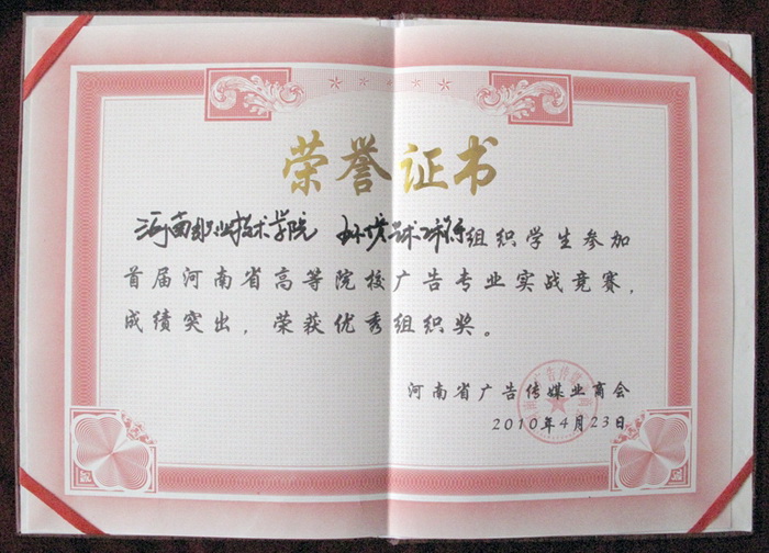 日前,在河南省首届大河杯广告创意大赛暨河南财经学院首届广告节上,我院环境艺术工程系广告策划专业代表队荣获河南省首届高校广告专业实战比赛团体冠军。