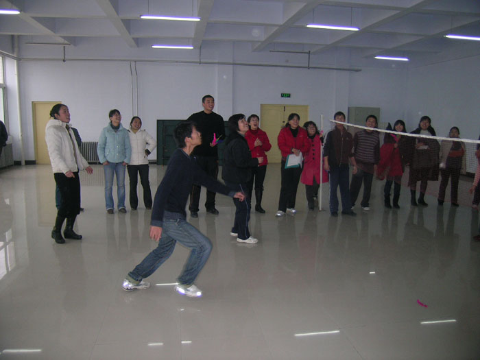 为培养教职工团体协作意识,丰富教职工业余文化生活,鼓励教职工积极投身于体育锻炼,基础社科部于2009年12月10日举办了首届教职工毽球团体比赛。