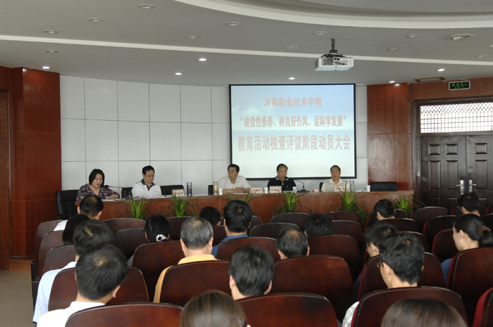 会上,院纪委副书记、监察室主任邵芙蓉同志首先宣读了《河南职业技术学院开展“讲党性修养、树良好作风、促科学发展”教育活动检查评议阶段工作安排》,对我院检查评议阶段的工作重点、方法步骤等做出安排部署,要求重点抓好三个关键环节:一是要撰写好领导班子和领导干部个人剖析报告。学院各级领导班子和领导干部要认真进行自我检查、自我剖析,形成领导班子和领导干部个人剖析报告。二是要开好专题民主生活会,深入分析党性党风党纪方面存在的突出问题,提出改进措施。三是要组织好群众评议,评议结果要以一定方式向领导班子和领导干部个人进行反馈。