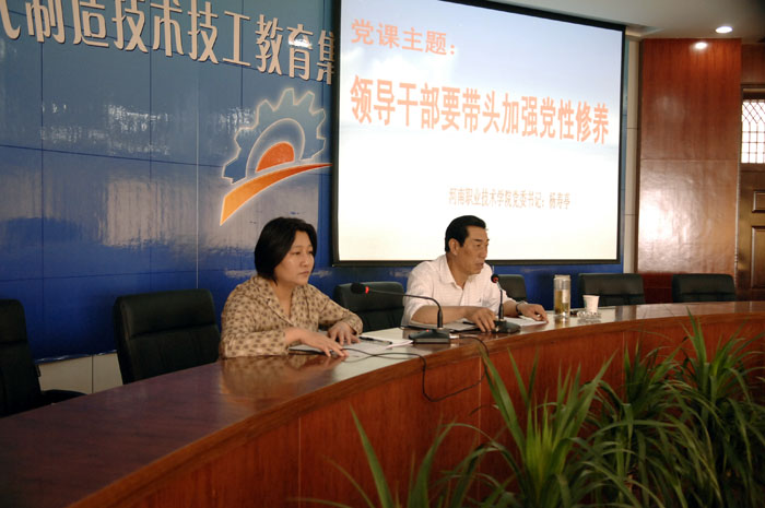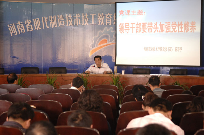 杨书记以《领导干部要带头加强党性修养》为主题,紧密联系“讲党性修养、树良好作风、促科学发展”教育活动内容,结合我院高职教育工作实际,及当前全院党员干部的思想状况,通过现实生活中的典型事例,阐述了党性修养的科学内涵,论述了新时期加强党性修养的重要性。针对我院领导干部如何带头加强党性修养,他提出了以下六点希望:一是要带头学习政治理论。领导干部要把学习作为一种政治责任、一种精神追求,带头学习政治理论,努力用科学理论武装头脑,指导实践,推动工作。二是要带头恪尽职守。作为一名领导干部,无论担负什么职责,做什么具体工作,都要有积极作为的抱负。三是要带头维护团结。学院各单位领导干部要像爱护眼睛一样维护本单位领导班子的团结,努力营造和谐局面。团结出成绩,团结出人才,团结出干部。四是要带头发扬民主。发扬民主是领导班子和学院和谐的重要保证,加强领导班子建设,创建和谐校园,必须坚持民主集中制原则,大力发扬党内民主和党外民主,努力营造民主和谐的政治氛围。五是要带头清正廉洁。领导干部要树立全心全意为人民群众服务的宗旨意识,常修为政之德、常思贪欲之害、常怀律己之心。六是要带头干事创业。领导干部应当积极投身到社会实践中去,在实践中经受磨炼、鉴定和考验;在实践中培养对党的忠诚,对人民的感情,对事业的执著追求。大家认为杨书记的讲话内容丰富,论述深刻,具有很强的理论性、思想性和指导性,使大家深受教育和启发。