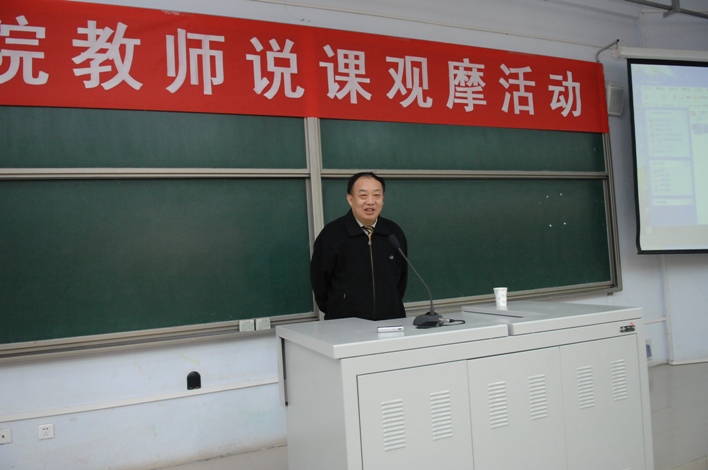最后,王爱群院长作了总结讲话,他指出“三人行,则必有我师”,本次说课活动的开展为全院教师搭建了良好的学习、交流和提升自我的平台;他要求教师要充分认识课程与专业建设的关系,要准确定位课程在专业建设中的位置,围绕专业建设设课程,并通过提高课程质量进一步加强学院专业内涵建设;教师要以改革和发展的眼光来进行课程建设,坚决破除不符合专业人才培养目标的条条框框;教师在说课活动的准备过程中要多下功夫,多查找、参考与课程相关的信息和资料,把课程内容的知识性、趣味性和信息量结合起来;他希望全院教师都能在知识领域有所建树,以丰富的知识来展现自我的价值。