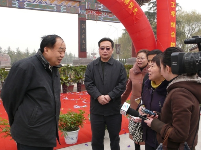 挂牌仪式结束后,院、系领导和学生代表接受了河南日报、郑州日报、郑州电视台等省内八家主流媒体的采访,并在景区领导的陪同下参观了景区。