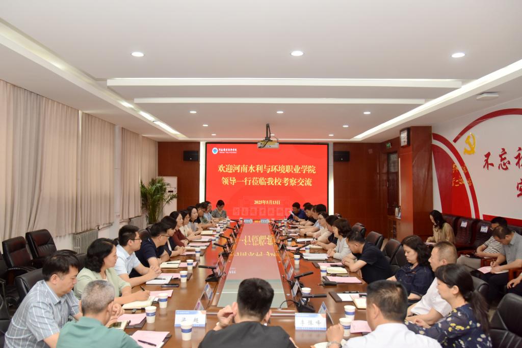 5月13日上午,河南水利与环境职业学院副校长张竟超一行来校考察交流。校党委副书记、工会主席田华,校党委委员、副校长肖珑出席座谈会。党政办公室、党委宣传部等职能部门负责人参会。会议由校党委委员、党委组织部部长杨华主持。