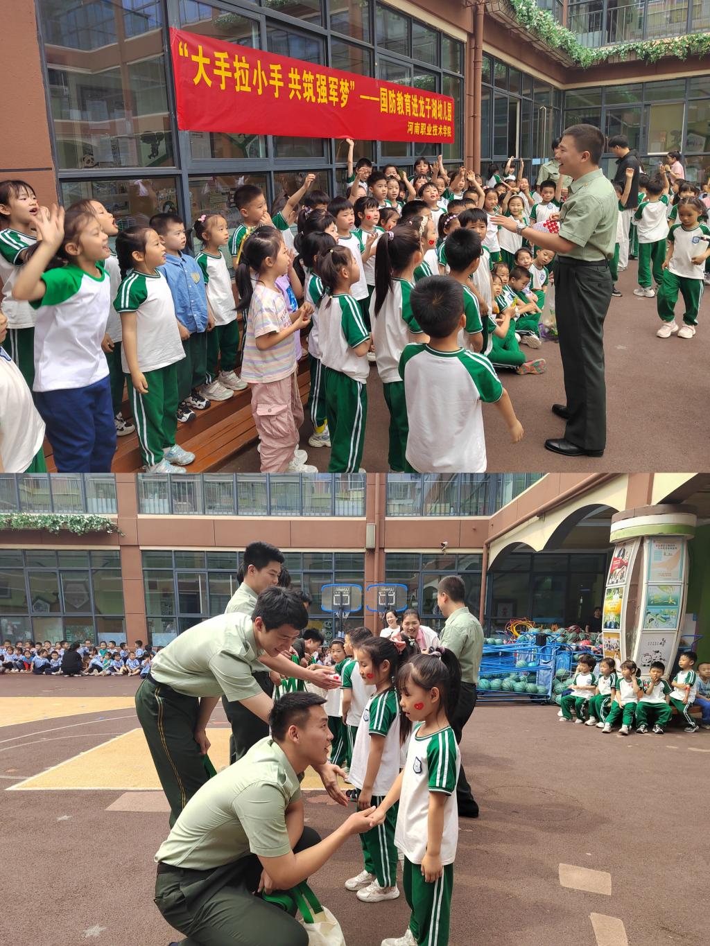 5月27日上午,河南职院“大手拉小手 共筑强军梦”国防教育进校园活动在郑州市郑东新区龙子湖幼儿园举行。学校武装部办公室联合现代信息技术学院征兵联络员及9名退役大学生共同组织了此次活动,幼儿园500余名师生参加了活动。