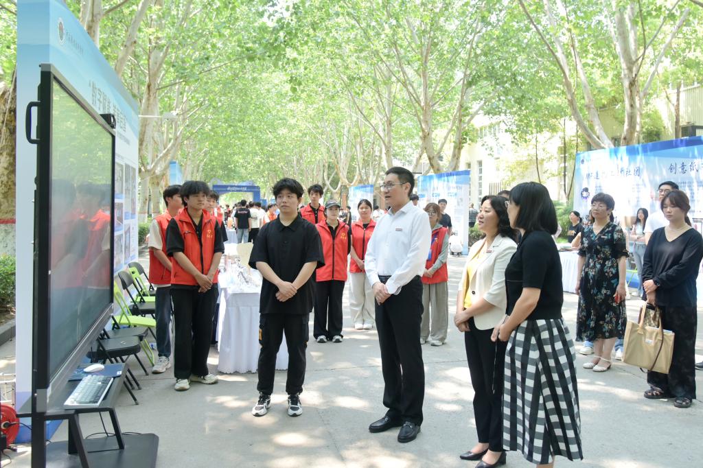 校党委书记厉励,校党委副书记、校长夏新颜在参观过程中与参展师生亲切交流,详细了解美育、文化、科技等相关工作开展情况,对师生们在美育浸润、文化育人、科技创新等方面的积极探索和取得的成果给予了高度评价。校领导指出,大力培育校园美育文化、激发学生科技创新探索热情,是深入学习贯彻习近平新时代中国特色社会主义思想,全面贯彻落实党的二十大、二十届三中全会精神和全国、全省教育大会精神,切实肩负“为党育人、为国育才”崇高使命的重要举措。学校各单位要进一步丰富校园文化内涵,营造浓厚的美育氛围;建立健全科技创新激励机制,将科技成果与社会发展紧密结合,全面提升学生美学素养和科技创新能力水平, 以美育涵养人文情怀,以文化铸魂价值认同,以技能锻造立业之本,构建高质量“三全育人”体系和“大思政”工作格局。校领导鼓励同学们要树立远大志向,钻研磨砺专业技能,积极响应国家创新驱动发展战略号召,努力成为技艺精湛、创新有为的能工巧匠、大国工匠;要主动将中原文化、黄河文化、河职文化融入专业技能实践,在技能锻造中传承文化、彰显创意,为个人成长与行业发展注入新活力;要积极开展多彩校园文化活动,以美学理念赋能专业学习与创新实践,全面提升综合素质,为奋力谱写中原大地推进中国式现代化新篇章贡献更大力量。