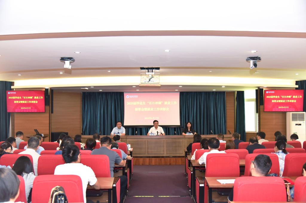 6月17日上午,学校2025届毕业生“百日冲刺”就业工作部署会暨就业工作表彰会在勤业楼238会议室召开。相关职能部门负责人、各二级学院党政负责人、就业专干、2025届毕业班专兼职辅导员以及师生代表、校友代表、企业代表等120余人参加会议。校党委书记厉励出席并讲话,校党委副书记、校长夏新颜主持会议,校党委委员、副校长鲁冬部署相关工作。