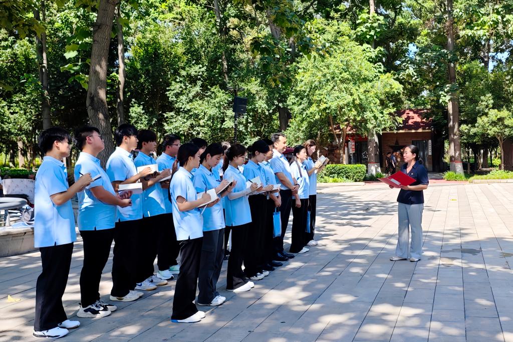 在焦裕禄干部学院旁的焦桐广场,田华以亭亭如盖的焦桐为鲜活教材,为学生进行授课。她深情回顾焦裕禄同志“心中装着全体人民、唯独没有他自己”的公仆情怀,倡树学生学习焦裕禄同志迎难而上、科学求实、无私奉献的崇高品质。田华强调,由焦裕禄亲手栽下的泡桐,其深扎大地的根系与直抵苍穹的枝干,正是共产党人初心本色与奋斗精神的永恒象征,同学们要将焦裕禄精神中的“硬核”品质融入到日常学习与实践中,让焦裕禄精神在技能报国的征程中绽放新的光彩。