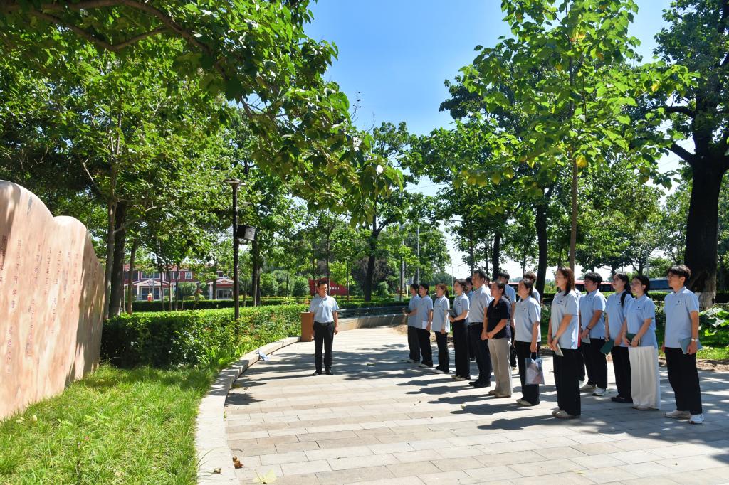 7月5日上午,校党委副书记、工会主席田华在兰考焦桐树下,为参加学校“用脚步丈量河南——行走的思政课”暑期思政实践活动开封站的同学讲授专题思政课,激励青年学子在追寻榜样足迹、感悟精神力量的过程中,深刻体会传承红色基因、担当时代使命的重大意义。党委宣传部负责同志参加活动。