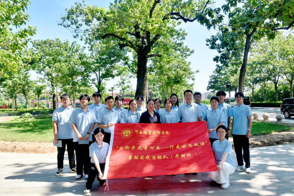 “用脚步丈量河南——行走的思政课”暑期实践活动,是学校落实省教育厅“牢记嘱托践使命 行走中原看巨变”为主题的具体体现,也是学校“大思政”铸魂工程的生动实践,今年学校共派出郑州、开封、新乡等三支实践队伍,分别前往三地22个红色基地和文化场馆,通过“走、看、听、讲、记、研”等形式,引导青年学生在实践中感悟红色精神,于学思践悟中坚定信念,以知行合一感恩奋进,为奋力谱写中原大地推进中国式现代化新篇章作出新的更大贡献。(供稿:郭爽;审稿:吴猛)