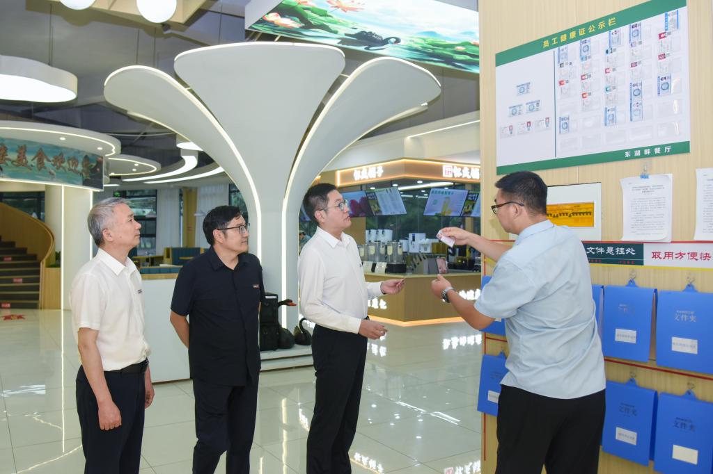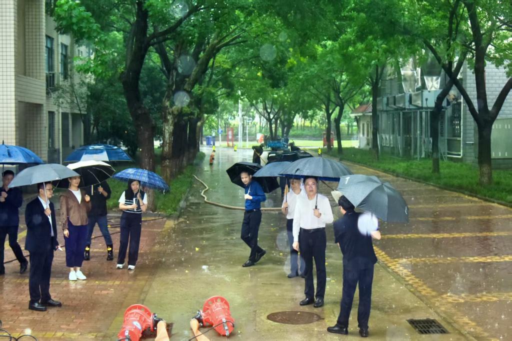 9月11日上午,校党委书记厉励,校党委副书记、校长夏新颜分别带队,针对校园防汛安全和餐饮服务保障工作开展专项检查。校党委委员、纪委书记盛兴文,校党委委员、副校长任枫轩和党政办公室、后勤管理处等部门负责人陪同检查。