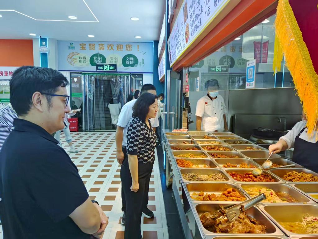 随后,厉励和夏新颜一行分别深入东湖畔餐厅、为天食府和园中园餐厅开展餐饮服务保障专项检查。他们逐一检查了餐厅后厨、原材料仓库、加工操作间等重点区域,对食材采购验收、储存、加工、餐具消毒等环节进行全链条核查,重点查验了食品保质期、留样记录及厨房卫生状况。厉励在检查时强调,学校餐厅是民生工程、良心工程的重要载体,更是服务育人的关键阵地。新学期伊始,要切实提升餐厅服务保障水平。一是守牢安全底线,践行“双心”承诺。要以“零容忍”态度抓好食品安全,从食材采购、加工制作到餐具消杀全流程闭环管理,建立每日巡查、每周抽检机制,公示检测结果。把师生健康放在首位,杜绝“三无”食材、违规操作,以实际行动诠释“民生工程暖人心、良心工程守初心”。二是优化管理服务,深化育人实效。要细化岗位责任,加强人员培训,规范服务流程,杜绝“生冷硬”态度。聚焦师生需求,推出平价窗口、特色菜品,提供便捷打包、错峰就餐服务。将“服务育人”融入细节,通过文明引导、节约宣传,培养学生珍惜粮食、尊重劳动的品质。三是厚植文化底蕴,营造温馨氛围。要结合校园文化布置餐厅环境,设置文明标语、饮食科普展板。开展“光盘行动”“最美餐桌”等活动,引导师生文明用餐。推动餐厅从“吃饭场所”向“文化阵地”转变,让师生在舒适环境中感受温暖、涵养品格。希望大家以高度责任感落实要求,把餐厅建成师生满意的“暖心驿站”,为学校发展筑牢民生根基。