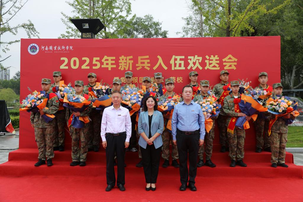 夏新颜代表学校向入伍学生代表致以最热烈的祝贺和最诚挚的祝福。她勉励河职学子:一是铭记历史,汲取精神力量,担当时代使命,以向阳生长、挺膺担当的姿态,不断续写青春新篇章;二是爱党报国,坚定理想信念,筑牢精神根基,牢记初心使命,在军营大舞台上继续成就梦想,为祖国争光、为人生添彩;三是拥军荣校,淬炼过硬本领,彰显河职担当,时刻牢记“拥军荣校”使命,以实际行动展现自身的优秀品质和专业素养,尽快实现从河职学子到合格军人的华丽转变;四是展望未来,谱写青春华章,助力强军梦想,让青春在军营中闪光,思想在部队中升华,为自己和学校多争荣誉,为祖国和人民多立新功。