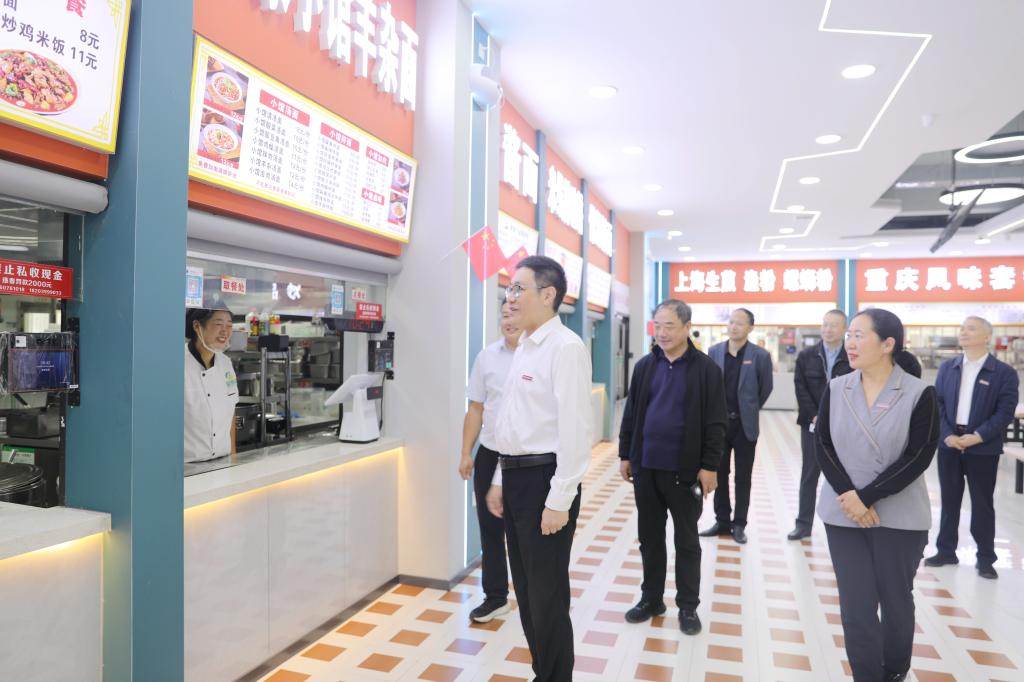 在为天食府餐厅,厉励重点核查食品原材料采购溯源台账、冷藏储存规范及菜品留样制度执行情况,详细询问双节假期菜品供应时段与师生就餐服务保障措施。看到食堂工作人员正有条不紊地准备午餐,食材新鲜、环境整洁,他对大家的辛勤付出表示感谢。他说“民以食为天,假期里留校师生的饮食保障全靠你们。你们用责任心守护着大家的‘舌尖安全’,这份坚守非常有意义。”随后,他对餐厅值班工作提出具体要求,要严格落实食品安全管理制度,严格把控菜品质量与应急供应预案,严把食材采购、加工、售卖各环节关口,确保每一份餐食都安全、卫生、可口;同时要根据留校师生数量,合理调整餐食供应时间和品类,满足不同口味需求,让留校师生在假期也能吃得放心、吃得舒心。