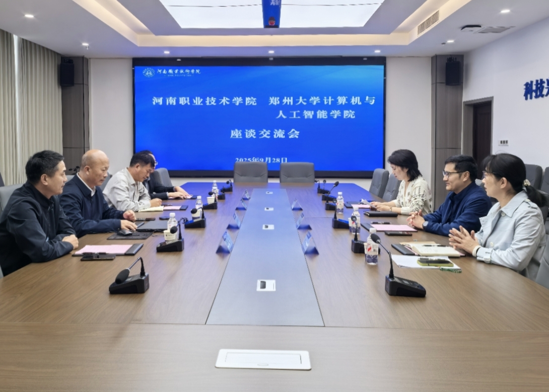 近日,郑州大学计算机与人工智能学院赵新灿一行5人来校,就促进院校交流、深化科研合作、共谋科教发展新路径开展座谈交流。会议在河职创新港302室举行,校党委委员、副校长任枫轩出席座谈会并讲话。现代信息技术学院,科技开发处相关负责人参加交流。