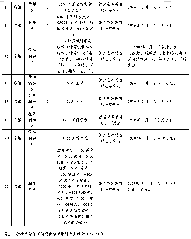 重要提示:招聘工作中具体事宜,请应聘人员随时关注我校网站首页通知公告(本人未及时查阅相关信息造成的后果,责任自负)。