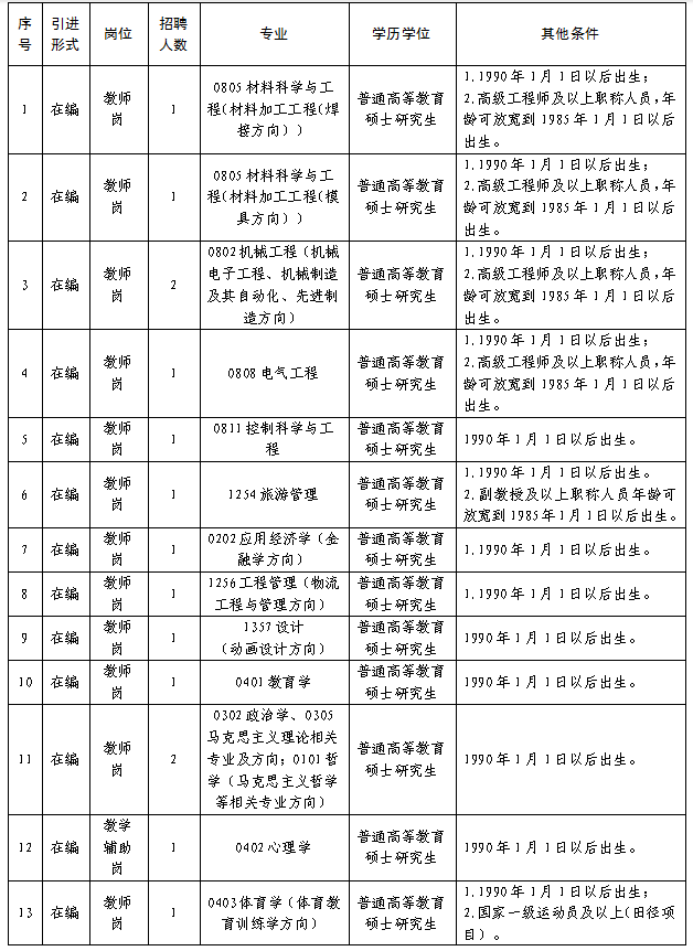 根据岗位空缺情况和学校事业发展需要,2025年公开招聘工作人员30名。招聘专业及计划见附件《河南职业技术学院2025年公开招聘岗位信息表》(以国务院学位委员会、教育部印发的《研究生教育学科专业目录(2022年)》为准,学科括号内的专业方向仅为招聘岗位条件要求,不作为资格审核依据)。