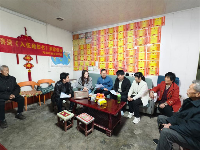 本网讯 3月25日至27日,河南职业技术学院开展《入伍通知书》喜送家活动,向上半年参军的新兵家庭代表送上“河职好儿郎,参军献国防”专属光荣牌。