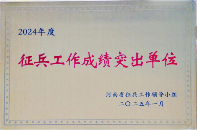 本网讯 近日,河南省征兵工作领导小组下发《关于表扬2024年河南省征兵工作成绩突出单位和个人的通报》。河南职业技术学院荣获2024年度“征兵工作成绩突出单位”荣誉称号,这也是学校连续第七年获此殊荣。