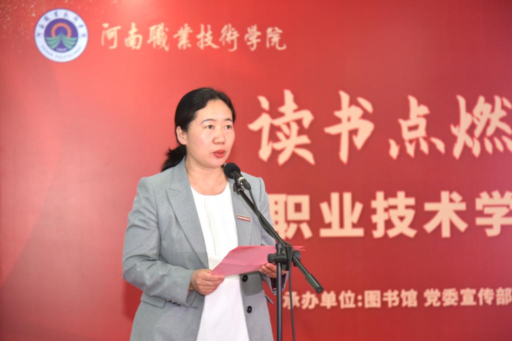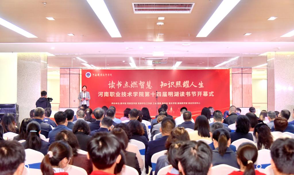 阅享春光,书韵飘香。4月21日上午,河南职业技术学院第十四届明湖读书节开幕式在图书馆举行。校党委书记厉励出席开幕式并宣布读书节开幕。校党委副书记、校长夏新颜致开幕辞。中国光华科技基金会科技事业中心主任钮海琴代表基金会向学校捐赠图书4.4万册。校党委副书记、工会主席田华主持开幕式。校领导李玉峰、任枫轩、鲁冬、朱永宽,各单位党政负责人及师生代表200余人参加开幕式。
