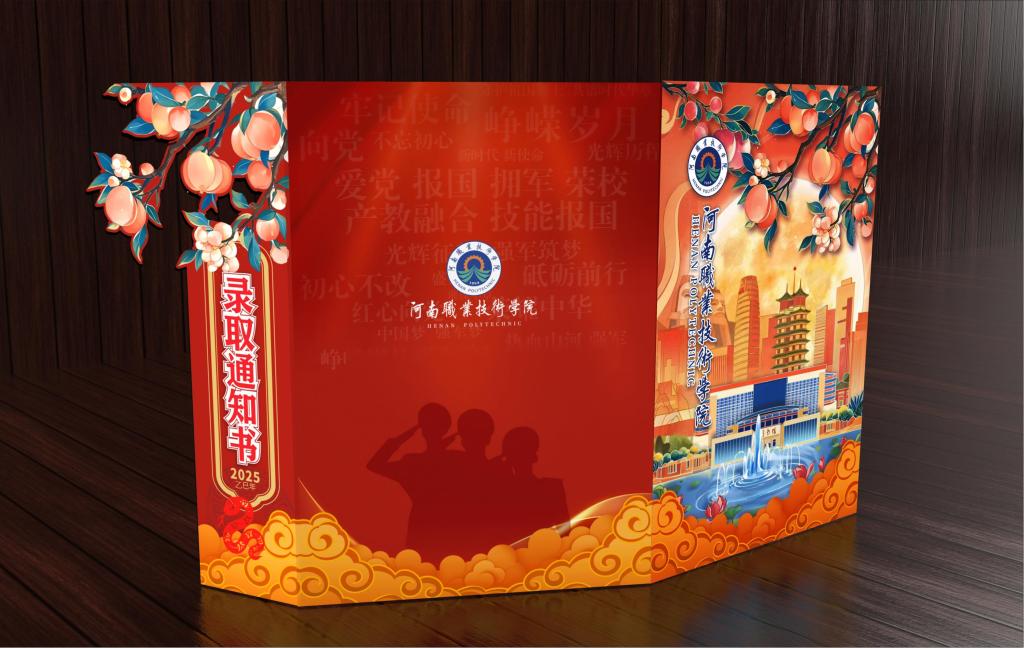 学校2025年的录取通知书由数字创意与设计学院赵永立老师设计,采用高纯度、充满活力的“中国红”作为主色调,以喜庆、热烈、庄重、现代且富有深意的视觉语言,传达了学校对2025级新生的诚挚欢迎与殷切期望,同时展现学校的办学特色、地域文化底蕴和精神风貌。