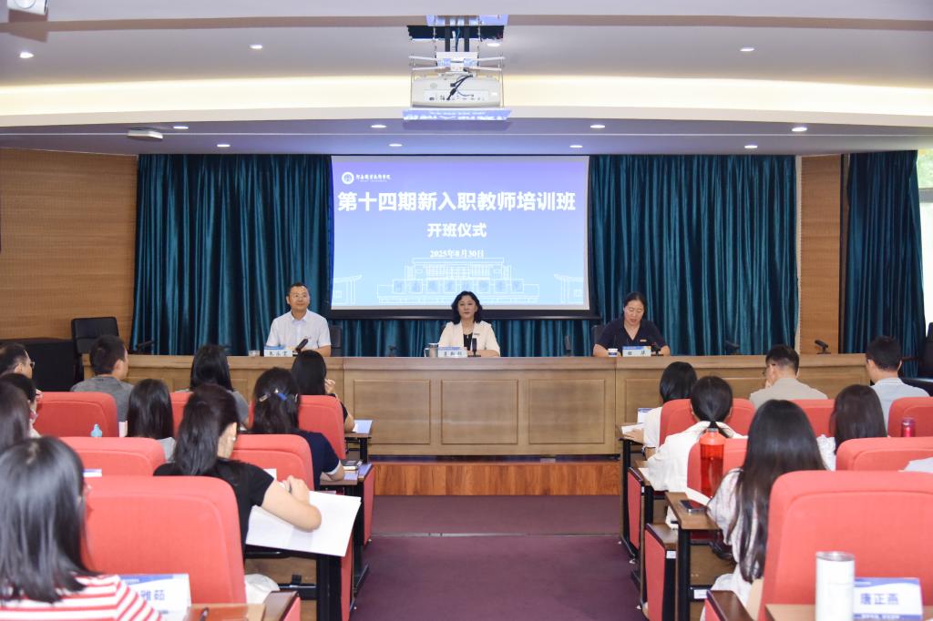 8月30日至31日,学校第十四期新入职教师培训班在勤业楼238会议室举行,54名新入职教师参加培训。校党委副书记、校长夏新颜出席开班仪式并致辞,校党委副书记、工会主席田华主持开班仪式,校党委委员、副校长朱永宽出席开班仪式并讲授开班第一课。新入职教师所在单位及相关职能部门负责人参加开班仪式。