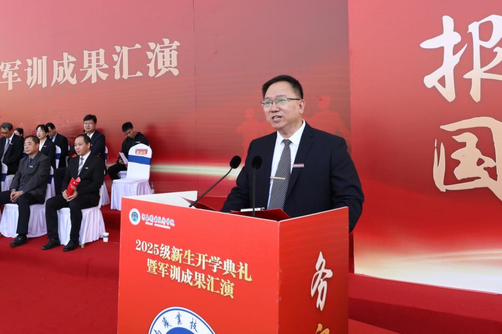 夏新颜代表学校全体教职工向7332名新同学加入河职“大家庭”表示欢迎,向来校指导军训工作的全体教官表示诚挚感谢,并作了题为《以G代码编程人生,以工匠精神驱动未来》的致辞。她指出,河职71载薪火相传,生生不息,是一所有根有魂,有梦有路,启智润心的大学。夏新颜对全体新同学提出三点希望:一是希望你们写入G54代码定位,在心田里传承家国情怀的“价值原点”,让青春在为中国式现代化挺膺担当中焕发绚丽光彩;二是希望你们执行G01指令定向,在行动上传动精益求精的“直线路径”,用专注书写属于自己的精彩未来;三是希望你们调用G02/G03智慧超越,在协作中放大融合创新的“优美弧线”,在成就自我中汇聚百花竞秀芳满园的青春智慧。