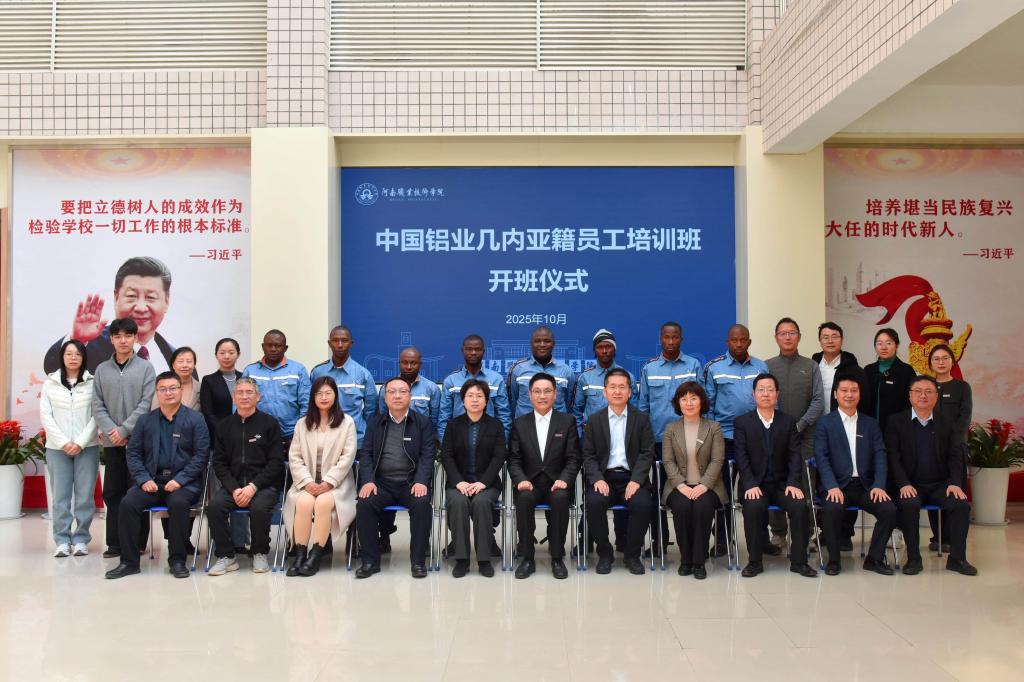 10月21日上午,河南职业技术学院2025年中国铝业几内亚籍员工培训项目开班仪式在勤业楼332会议室举行。校党委书记厉励作开班致辞,并为学员配发校牌。中国铝业股份有限公司人力资源部副总经理苏明明,有色金属工业人才中心主任助理、教育培训处处长赵丽霞等行业企业嘉宾应邀出席。校党委委员、副校长肖珑出席并向几内亚学员赠送学习礼包,表达美好的祝愿。国际合作交流处、材料工程学院、国际教育学院等相关部门负责同志和授课教师代表以及来自几内亚的全体学员参加仪式。开班仪式由校党委委员、副校长鲁冬主持。