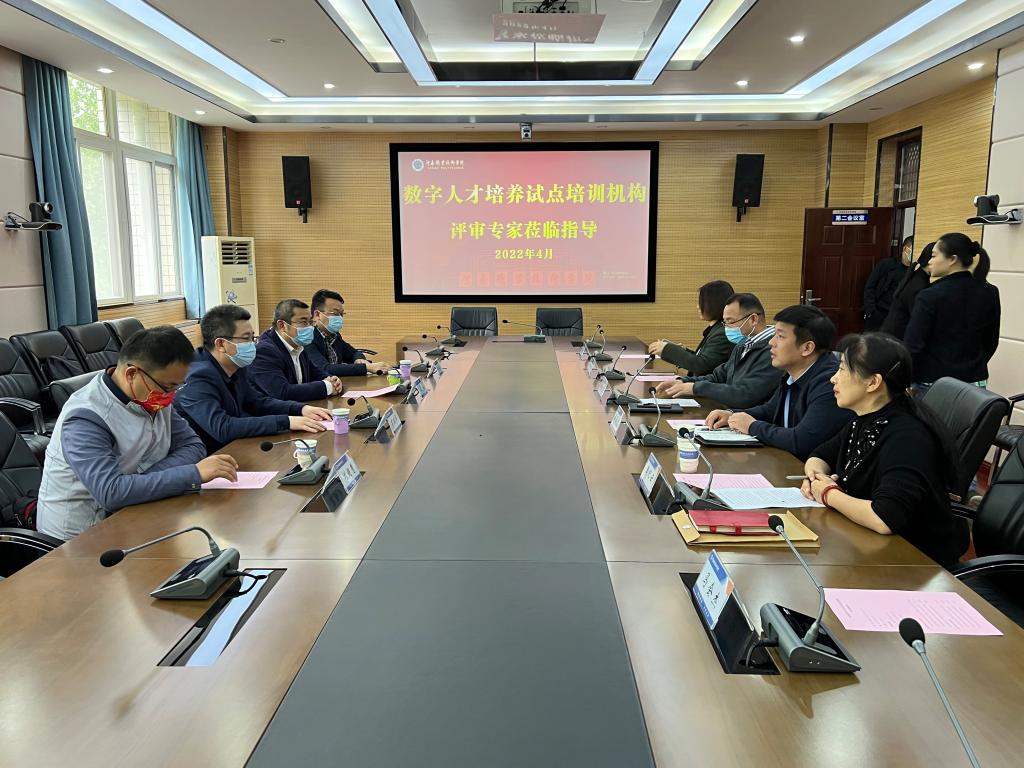 此次考察,分为座谈会介绍、查阅资料和现场考察等3个环节。专家组听取了学校相关部门负责人关于社会培训工作的基本情况、数字人才培养的经验做法和取得的成绩等介绍;查看了学校申报的8个工种所涉及的专业教材、教师资格、校企合作情况等材料;考察了学校数字人才培养方面的场地等硬件设施。最终对学校在招生、教学、管理和硬件资源等方面给予了肯定。