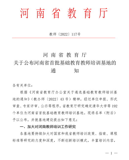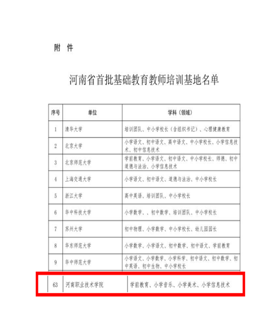 近日,河南省教育厅公布了全省首批192个基础教育教师培训基地名单,我校申报的学前教育、小学音乐、小学美术和小学信息技术等4个专业成功获批。